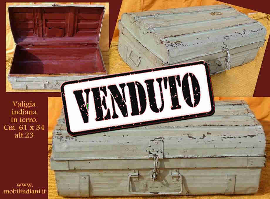 Valigia etnica in ferro, patina originale. Provvista di gancio per chiusura a lucchietto. Cm.61x34 h.23 Paese Rajasthan, India