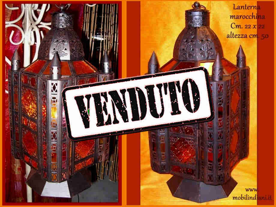 Lanterna marocchina ferro brunito. Vetri arancio. Cm.22x22 h.50