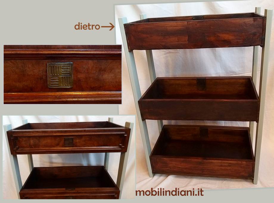 Mobile artigianale, realizzato con 3 cassetti antichi. Cm..71x36 h.105