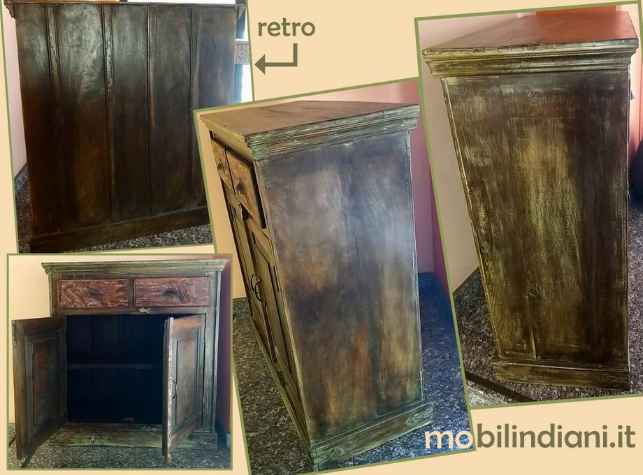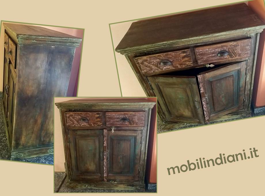 Mobile etnico in teak riciclato. Nuova vita al legno, lunga vita agli alberi! Cm.95x42,5 h.102 Paese Rajasthan, India. Manifattura artigianale e non industriale. PER INFO COSTI SPEDIZIONE CHIEDI su WhatsApp o via mail: info@mobilindiani.it