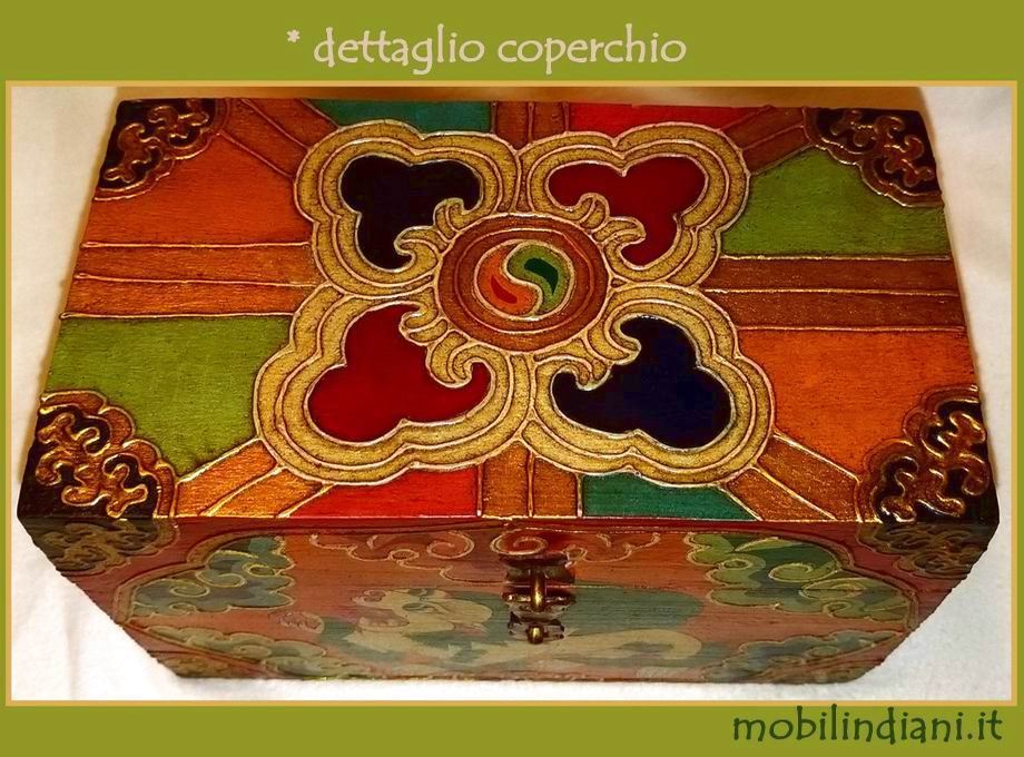Scatola tibetana Leone Delle Nevi. Simbolo sacro e importante, è l'emblema Nazionale del Tibet. Simboleggia coraggio e allegria. Cm.18x10 h.11,5 Tibet. COSTO TRASPORTO €. 8,80 Iva Inclusa.