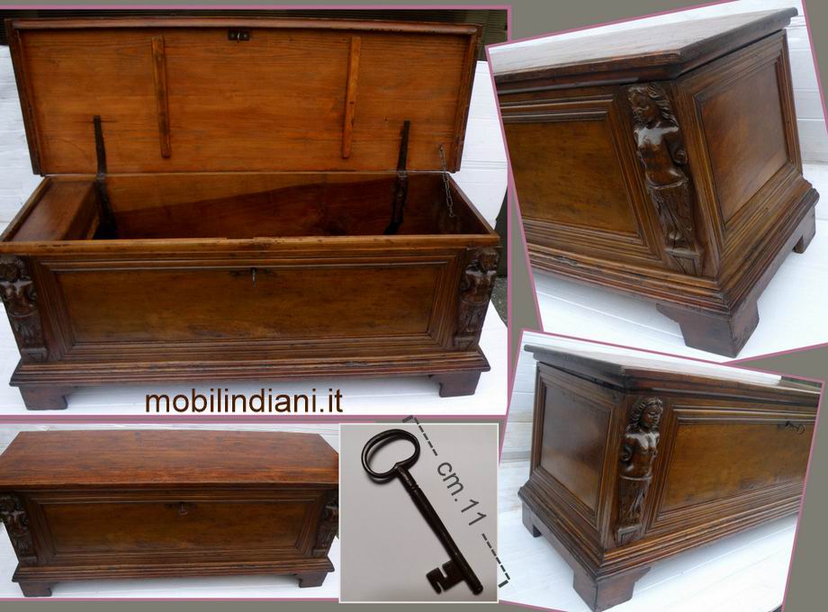 Cassapanca antica in noce + legni misti. Periodo '700 autentica e restaurata. Serratura funzionante, chiave annessa. Cm.160x54,5 h.67 Paese Italia PER INFO COSTI SPEDIZIONE CHIEDI su WhatsApp o via mail: info@mobilindiani.it