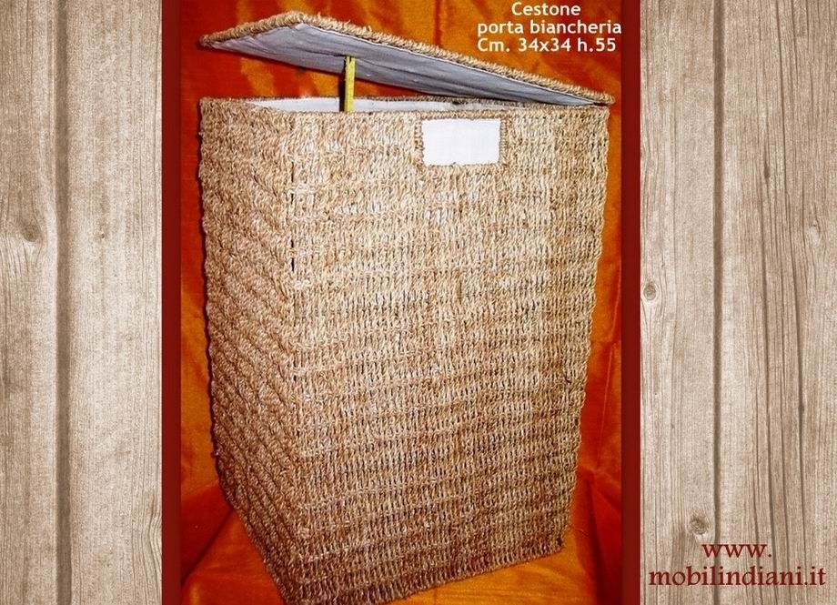 Cestone porta biancheria, foderato internamente in tessuto colore avorio. Cm.34x34 h.55 Paese Filippine. QUESTO ARTICOLO NON VIENE SPEDITO. SOLO RITIRO PRESSO NS. SEDE, COSTO ZERO.