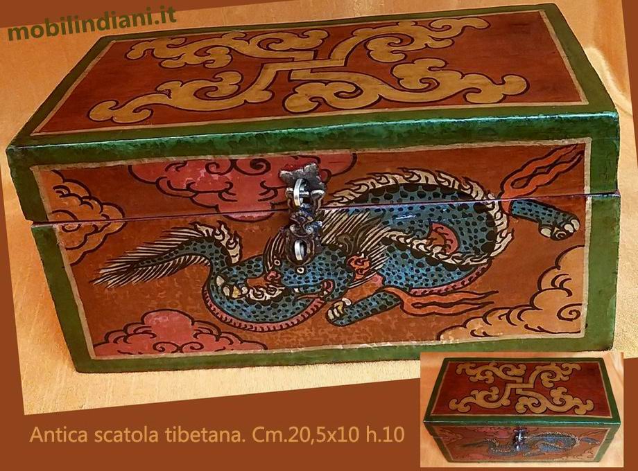 Bauletto tibetano antico dipinto a mano, patina originale. Dimensioni cm. 20,5x10 h.10 Origine Tibet. COSTO TRASPORTO €. 8,80 Iva Inclusa.