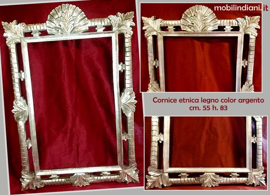 Disponibilità 1Cornice indiana, legno color argento intagliato a mano *SENZA SPECCHIO Cm.83x55 Paese India COSTO TRASPORTO €. 17,93 Iva Inclusa. Per costi trasporto Isole, chiedi info su WhatsApp o mail: info@mobilindiani.it
