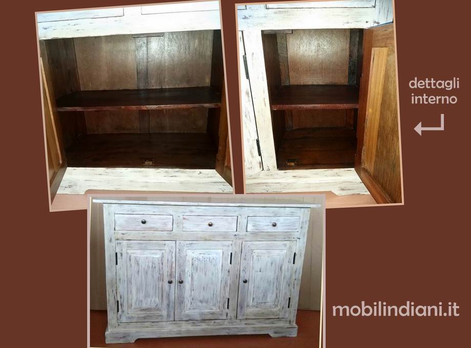 Credenza indiana legno bianco decapato. Cm.130x40 h.90