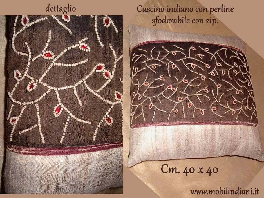 Disponibilità 1Cuscino etnico in lino, applicazioni in perline, completo di imbottitura. Bicolor marrone/beige, sfoderabile con cerniera. Cm. 40x40 Paese India. COSTO TRASPORTO €. 8,80 Iva Inclusa