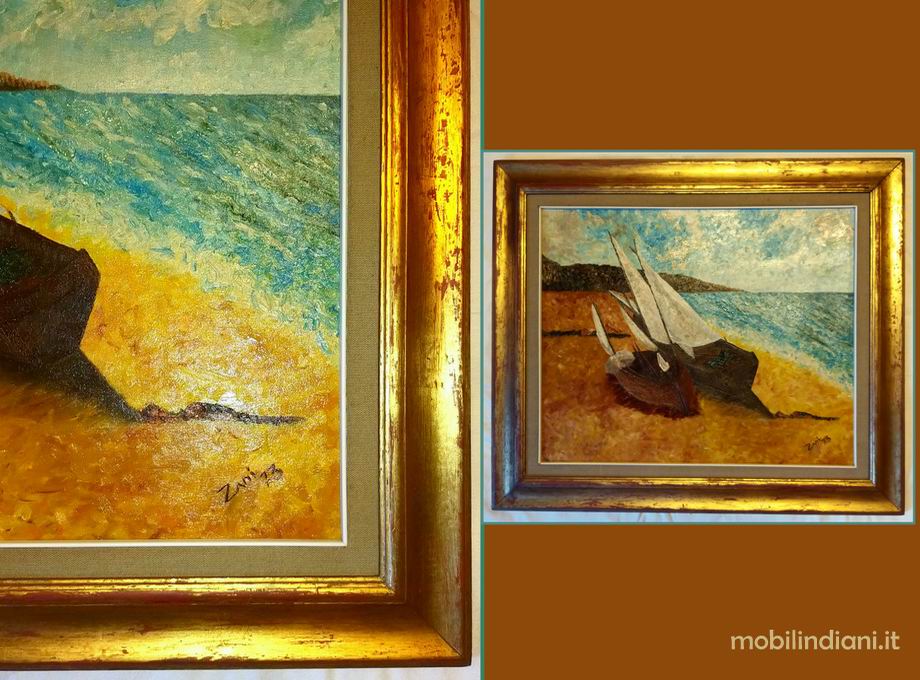 Quadro con barche, completo di cornice. Cm.78 h.69 Anno '73