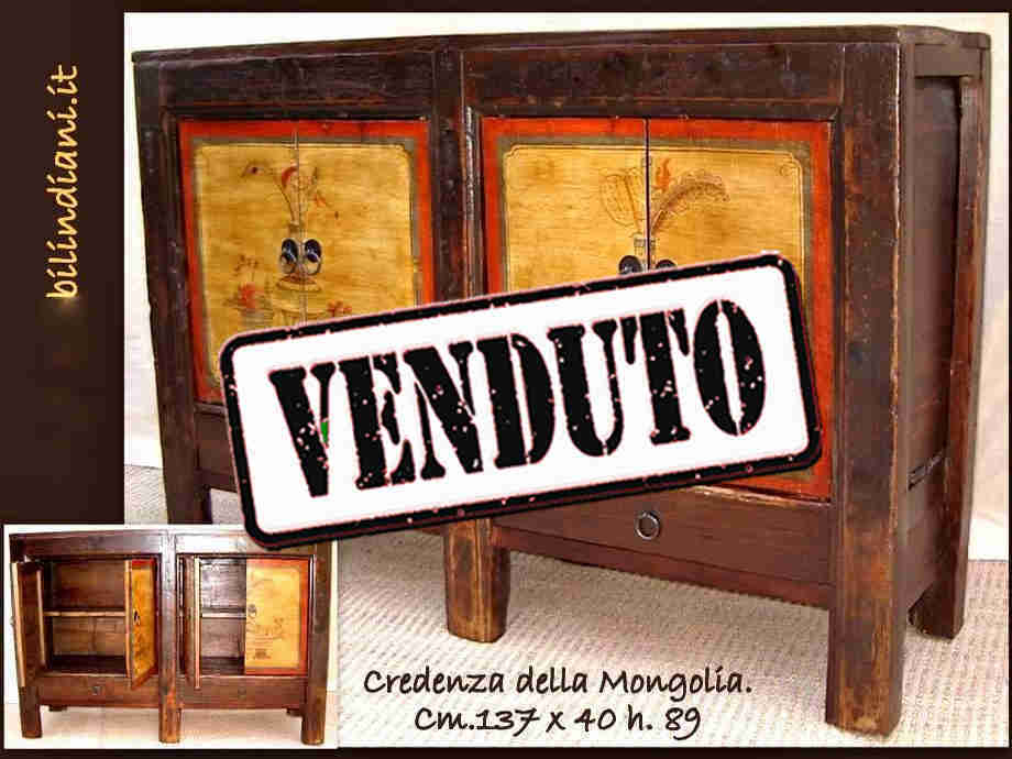 Disponibilità 0Credenza mongola antica, patina originale. Cm.137x40 h.89 Legno olmo. Restauro incluso. Paese Mongolia interna, ovvero la regione del Nord Est della Cina attuale