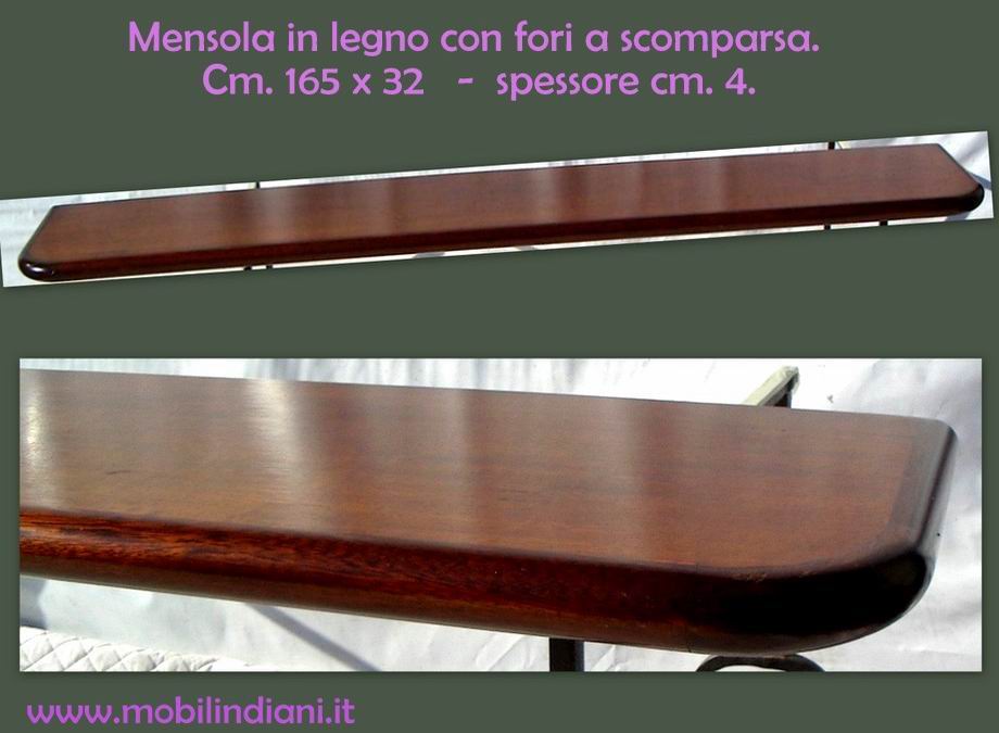 Mensola in legno cm.165x32 spess. 4 staffe a scomparsa