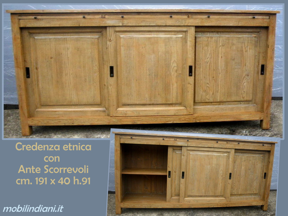 Mobile etnico con 3 ante scorrevoli. Legno massello abete riciclato, colore naturale. Cm.191x40 h.91 PER INFO COSTI SPEDIZIONE CHIEDI su WhatsApp o via mail: info@mobilindiani.it