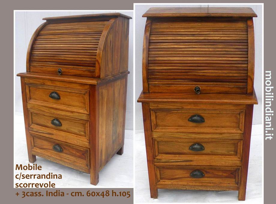 Disponibilità 1SCONTO SE ACQUISTI IN NEGOZIO. Mobile etnico serrandina. Realizzato con antina scorrevole cannettata con listelli in legno massello sheesham (noce) oltre 3 cassetti capienti. Cm.60x48 h.105 Il mobile è rigorosamente in legno massello. COSTO TRASPORTO €. 59,90 Iva Inclusa. Per costi trasporto Isole, chiedi info su WhatsApp o mail: info@mobilindiani.it