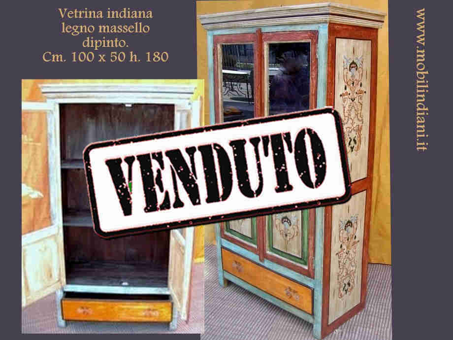 Mobili etnici dipinti. Vetrina etnica in legno decorato a mano, 2 ante + cassetto. Cm.100x50 h.180 Legno palissandro. Paese India