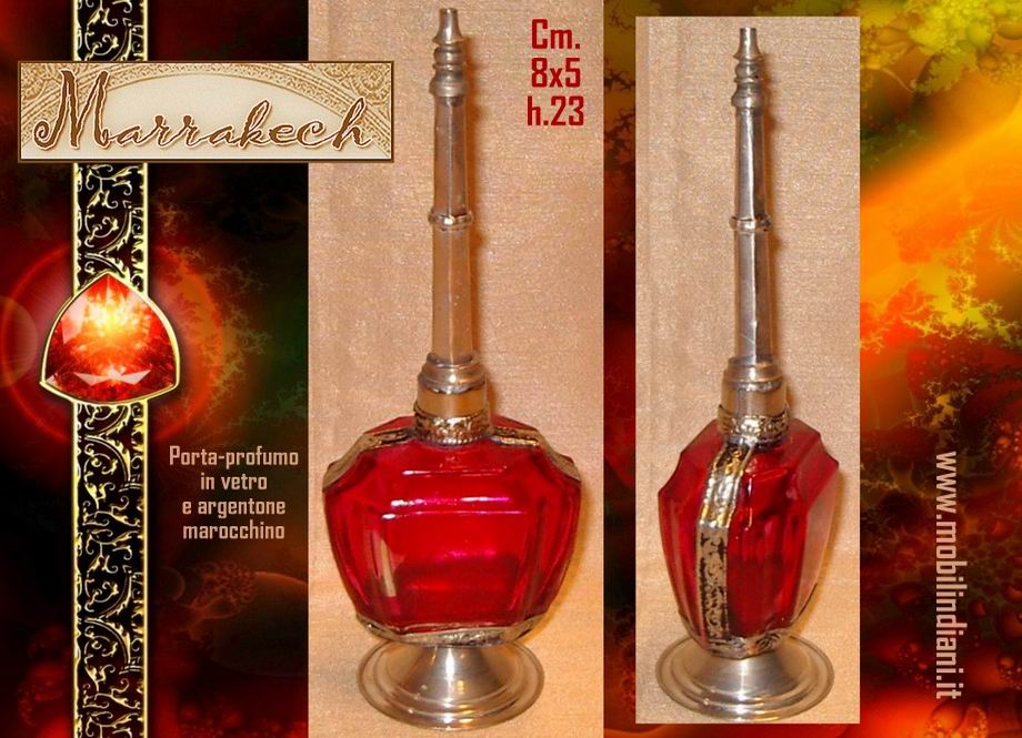 Disponibilità 1Bottiglietta decorativa berbera, da usare come portaprofumo o come profumatore d'ambiente. Vetro colore rosso, con applicazioni e tappo dispensatore a vite in argentone marocchino. Cm.8x5 h.23 Origine Marocco. COSTO TRASPORTO €. 8,80 Iva Inclusa. Per costi trasporto Isole, chiedi info su WhatsApp o mail: info@mobilindiani.it