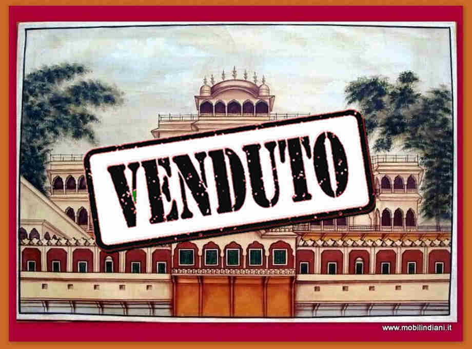 Disponibilità 0Quadri indiani. Olio su tela dipinto a mano. Figura "Residenza Indiana" Cm.86 h.59 *Senza cornice e senza vetro Paese Rajasthan, India
