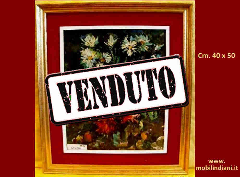 Disponibilità 0Quadro indiano natura morta, floreale, con passepartout colore "rosso tibetano" Cm.40 h.50 Dipinto a mano con cornice in legno *Senza vetro. Paese India