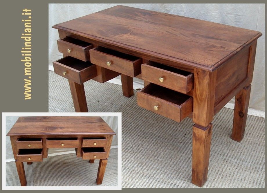 Disponibilità 1Arredamento da ufficio. Scrivania etnica con cassetti. Cm.115x60 h.77 Legno sheesham massello (noce) Origine Rajasthan, India PER INFO COSTI SPEDIZIONE CHIEDI su WhatsApp o via mail: info@mobilindiani.it