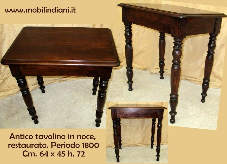 Disponibilità 1Piccolo tavolino antico alto in noce massello. Gambe tornite, realizzato artigianalmente in Italia. Cm.64x45 h.72 PER INFO COSTI SPEDIZIONE CHIEDI su WhatsApp o via mail: info@mobilindiani.it