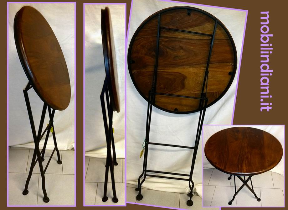 Tavolino etnico rotondo pieghevole in sheesham (noce) Diam. cm.62 h.78 Struttura in ferro robusta. Paese India. COSTO TRASPORTO €. 49,85 iva inclusa. Per trasporto Isole invia mail a info@mobilindiani.it