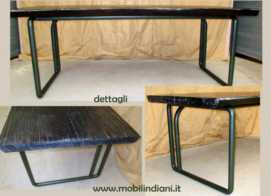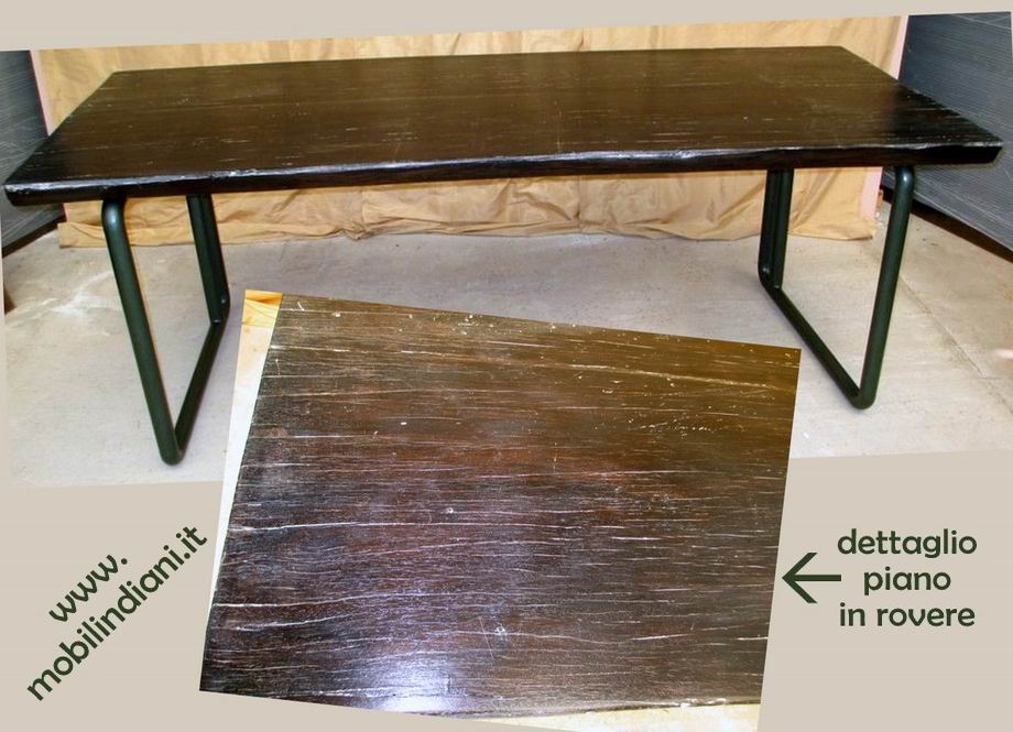 Splendido tavolo con pianale in legno massello di rovere, color testa di moro effetto marmorizzato spess. cm.6 Fissato su base in ferro color verde foresta. Linea industrial. Cm.204x87 h.78 Paese Italia NO SPEDIZIONE RITIRO PRESSO NS. SEDE COSTO ZERO. Per info chiedi su WhatsApp o mail: info@mobilindiani.it