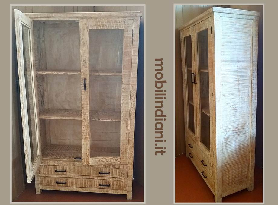 Disponibilità 1Vetrina indiana in legno di mango finitura decapata, realizzata artigianalmente 2 ante a vetro + 2 cassetti, maniglie in ferro. Cm.45x82 h.180 Paese di provenienza Rajasthan, India PER INFO COSTI SPEDIZIONE CHIEDI su WhatsApp o via mail: info@mobilindiani.it